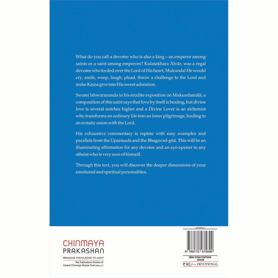 Swami Ishwarananda in his erudite exposition on Mukundamala, a composition of this saint says that love by itself is healing, but divine love is several notches higher and a Divine Lover is an alchemist who transforms an ordinary life into an inner pilgrimage, leading to an ecstatic union with the Lord.