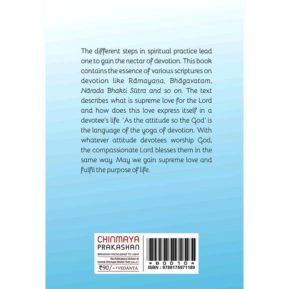 The different steps in spiritual practice lead one to gain the nectar of devotion. This book contains the essence of various scriptures on devotion like Ramayana, Bhagavatam, Narada Bhakti Sutra and so on.